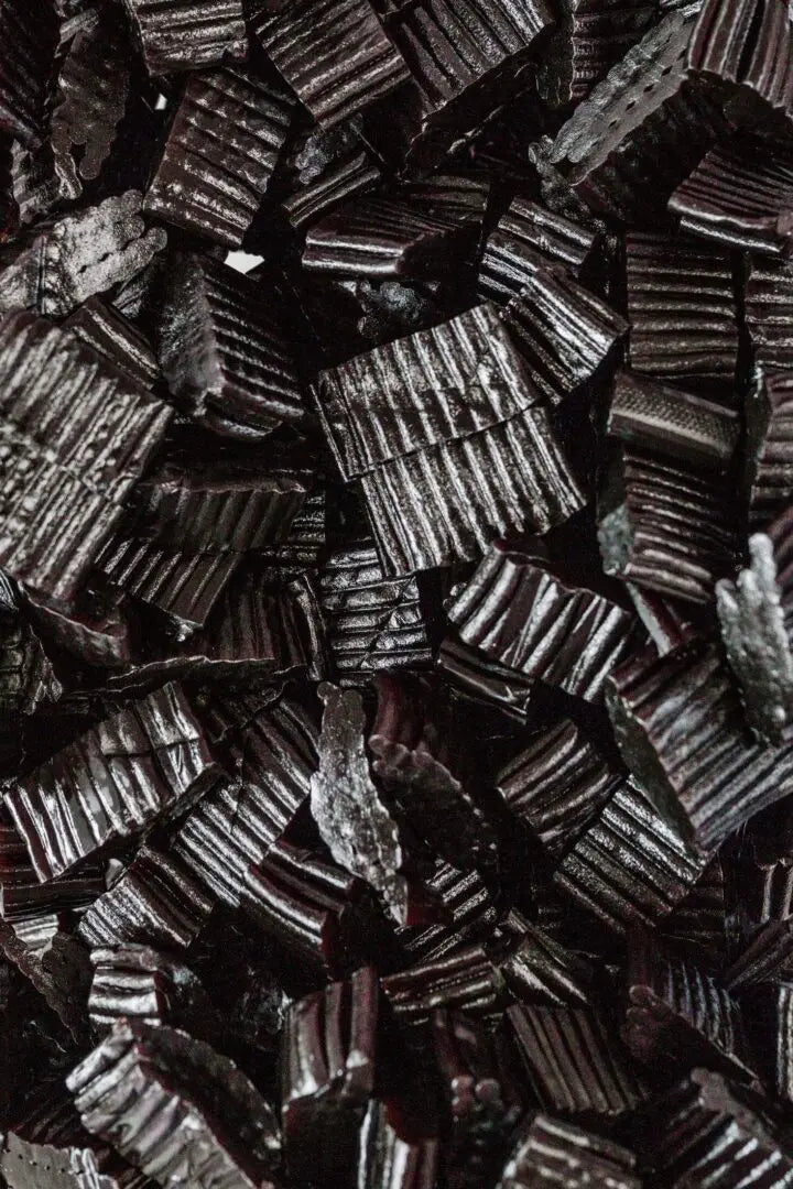 Ingredients: Glucose syrup, wheat flour, water, sugar-natural flavors (licorice), ammonium chloride, sorbitol, sodium sesquicarbonate, guar gum, salt, vegetable fat, beeswax, potassium sorbate. Color: Caramel.