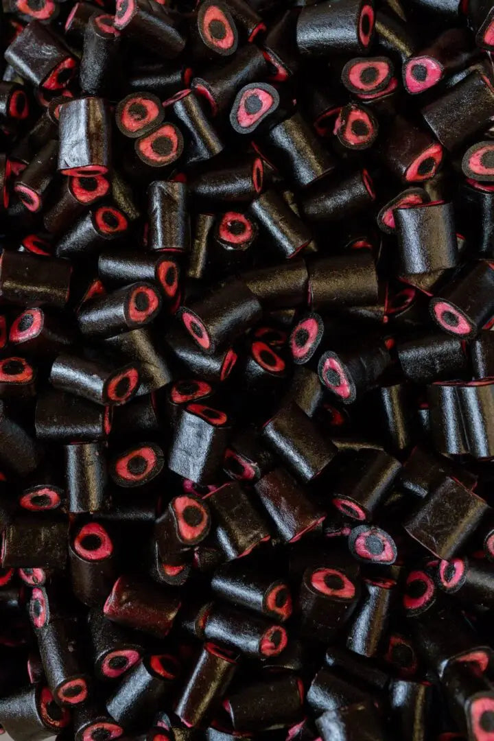 Raspberry-filled salty licorice bites