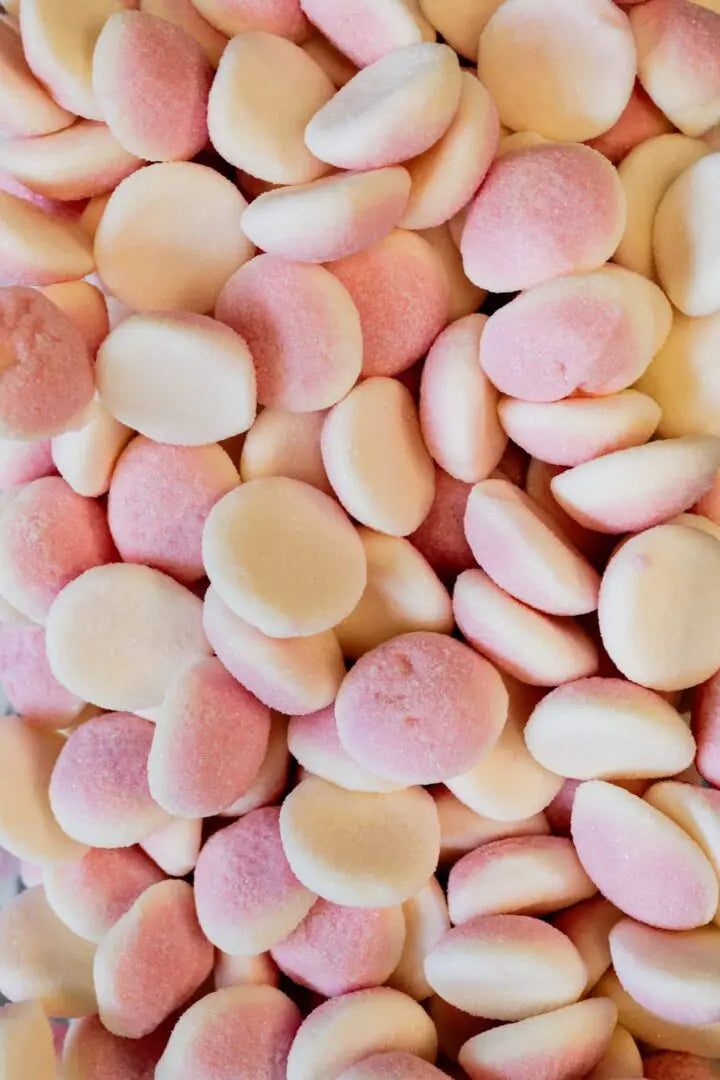 Sugared strawberries and cream flavored foam. Ingredients: Sugar, glucose syrup, water, gelatin, acid: monohydrate citric acid, flavoring, stabilizer, glycerol; black...